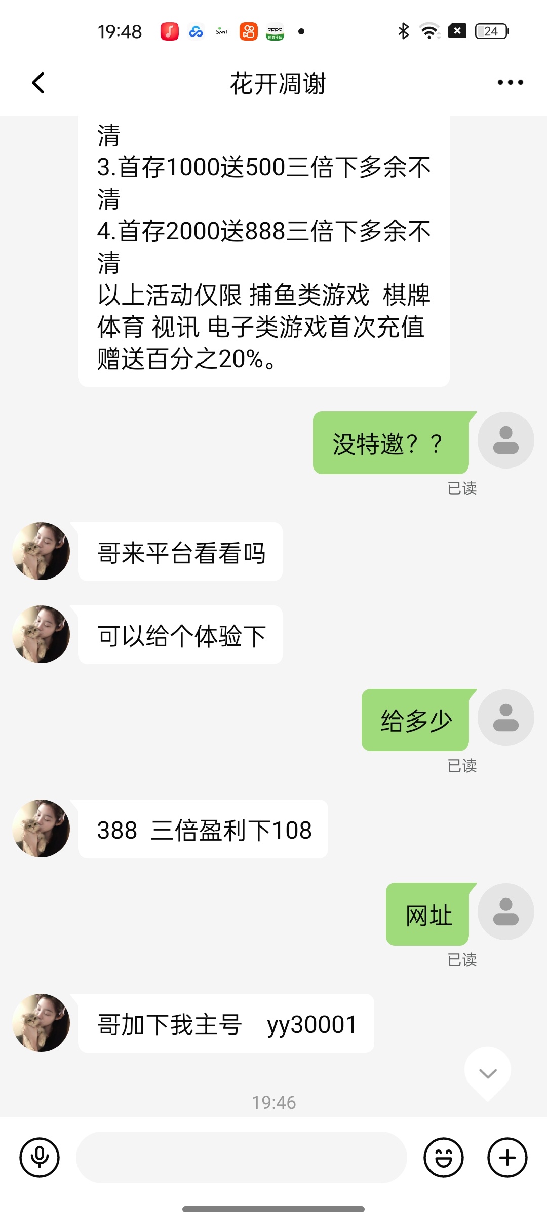 送388三倍盈利下108 三条号yy30001 闲的无聊的老哥去试试。我已下款