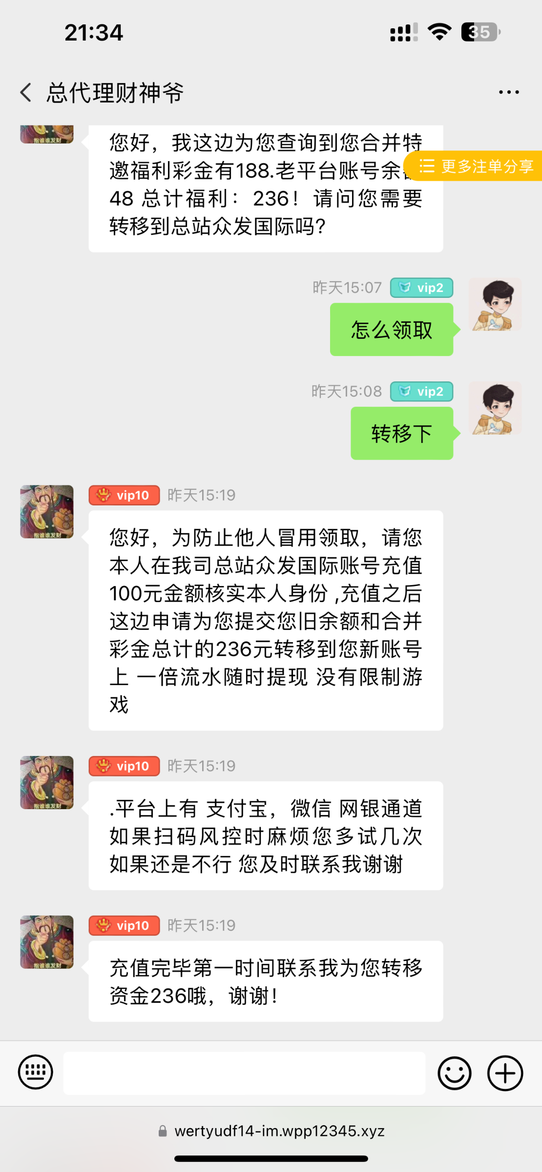 这个套路就是让你充值才给彩金,当存送打了,但是没有被黑