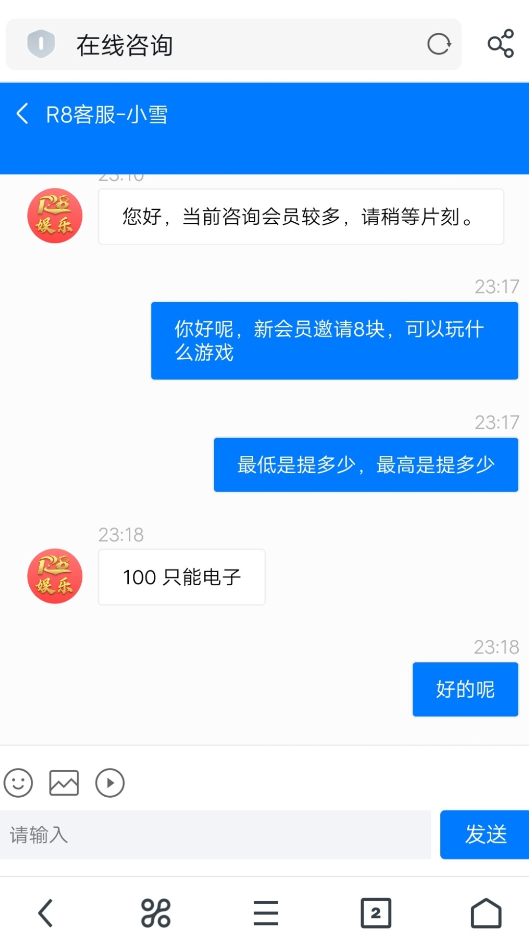 接到电话说银河娱乐还有未投注的余额告诉我网址然后打开是500彩票 找客服说是跟银河合并了有合并彩金110 让我充值激活账号 充了100就送了30 说是分3次送 然后130打到13000提现退回 通道维护妈的 谁知道黑不黑