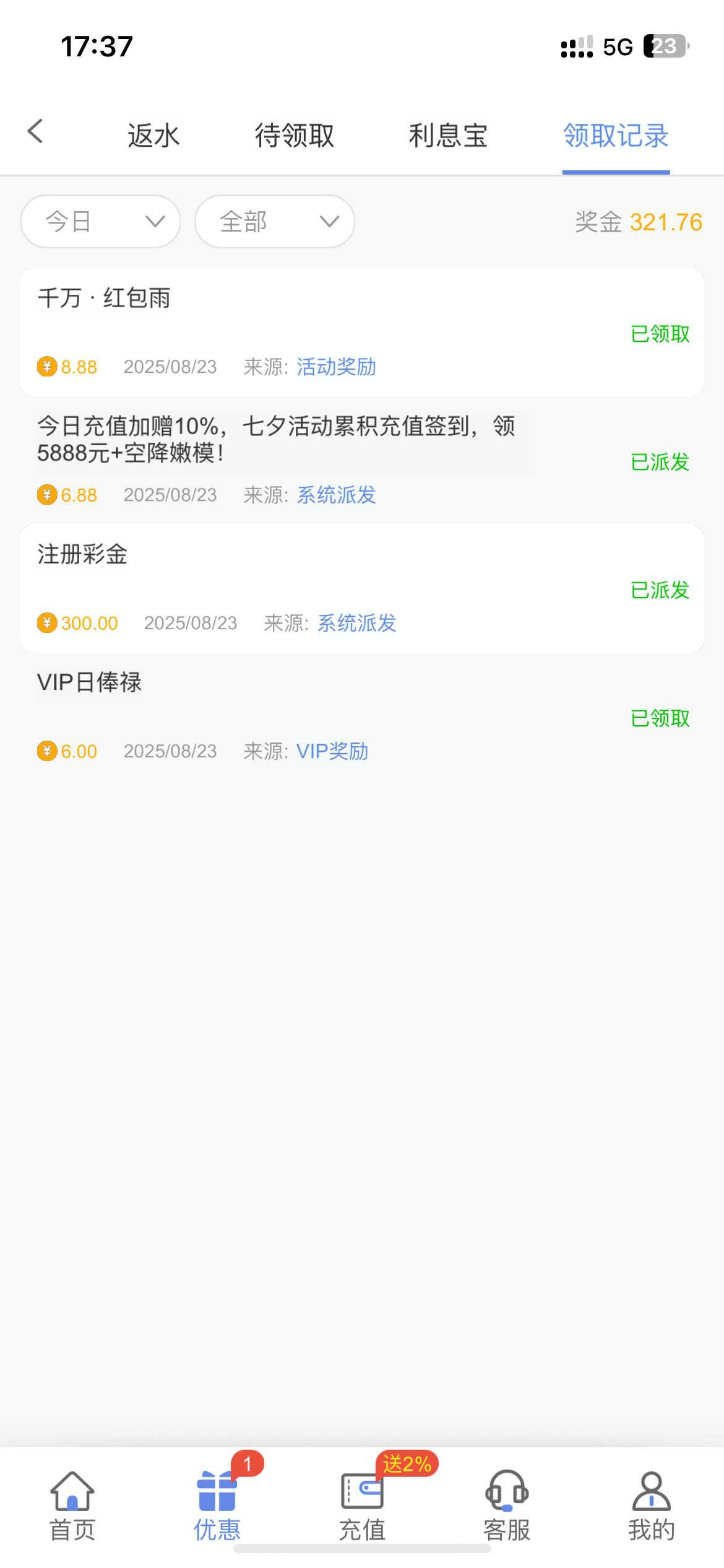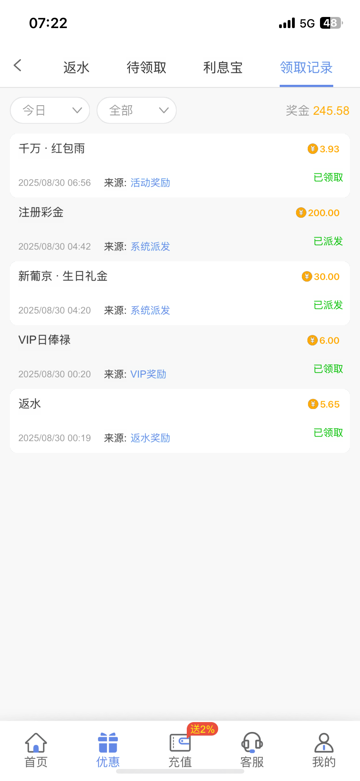 有没有老哥有近期充值记录
