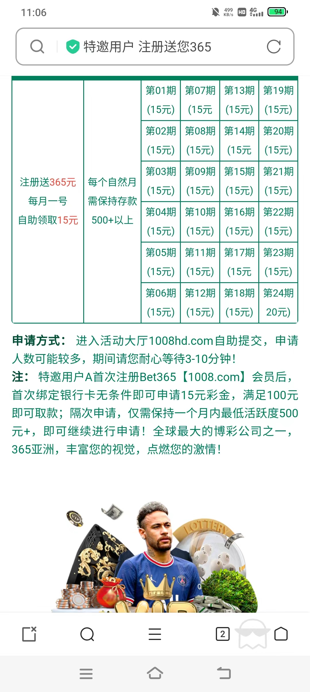 特邀碰瓷:和皇冠89HG是一家的都可以试试 新用户注册绑卡自助申请15彩金,具体规则自行查看活动,只能申请一期好像,基本人人都送