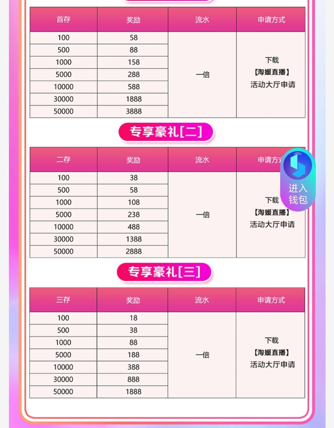 注册发ID找客服问问在不在特邀,再就可以玩个首存,基本上注册过黄播台都有,,首存100+66,二村100+38,三寸100+18,第三笔用波比钱包存款再送29,(活动中心还有个8.88,三村完有个红包10+)不限制游戏,一倍流水,本项目仅套彩,该项目风险自理,