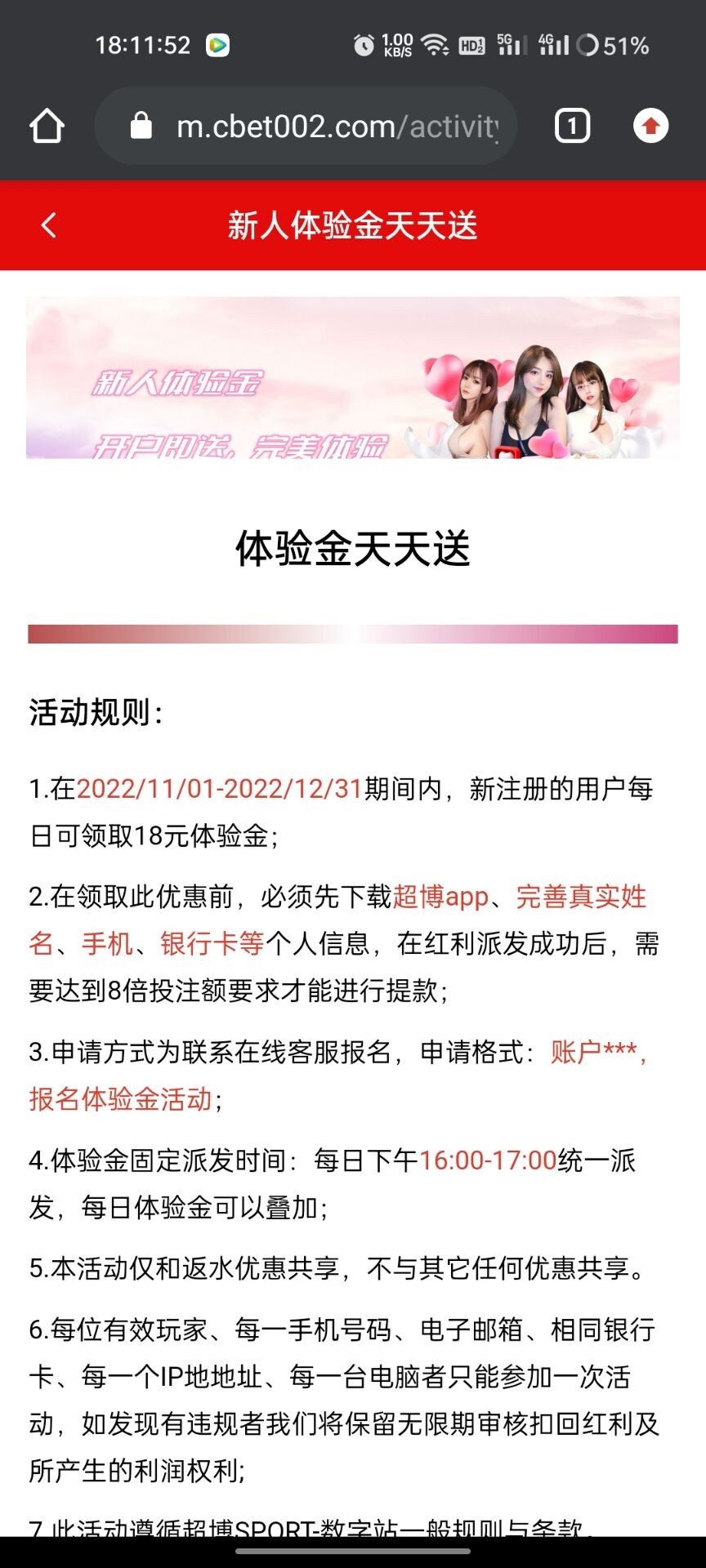 新用户下载APP注册绑卡,手机号。联系客服登记18元体验。每天都可以申请。详细的话看活动优惠。