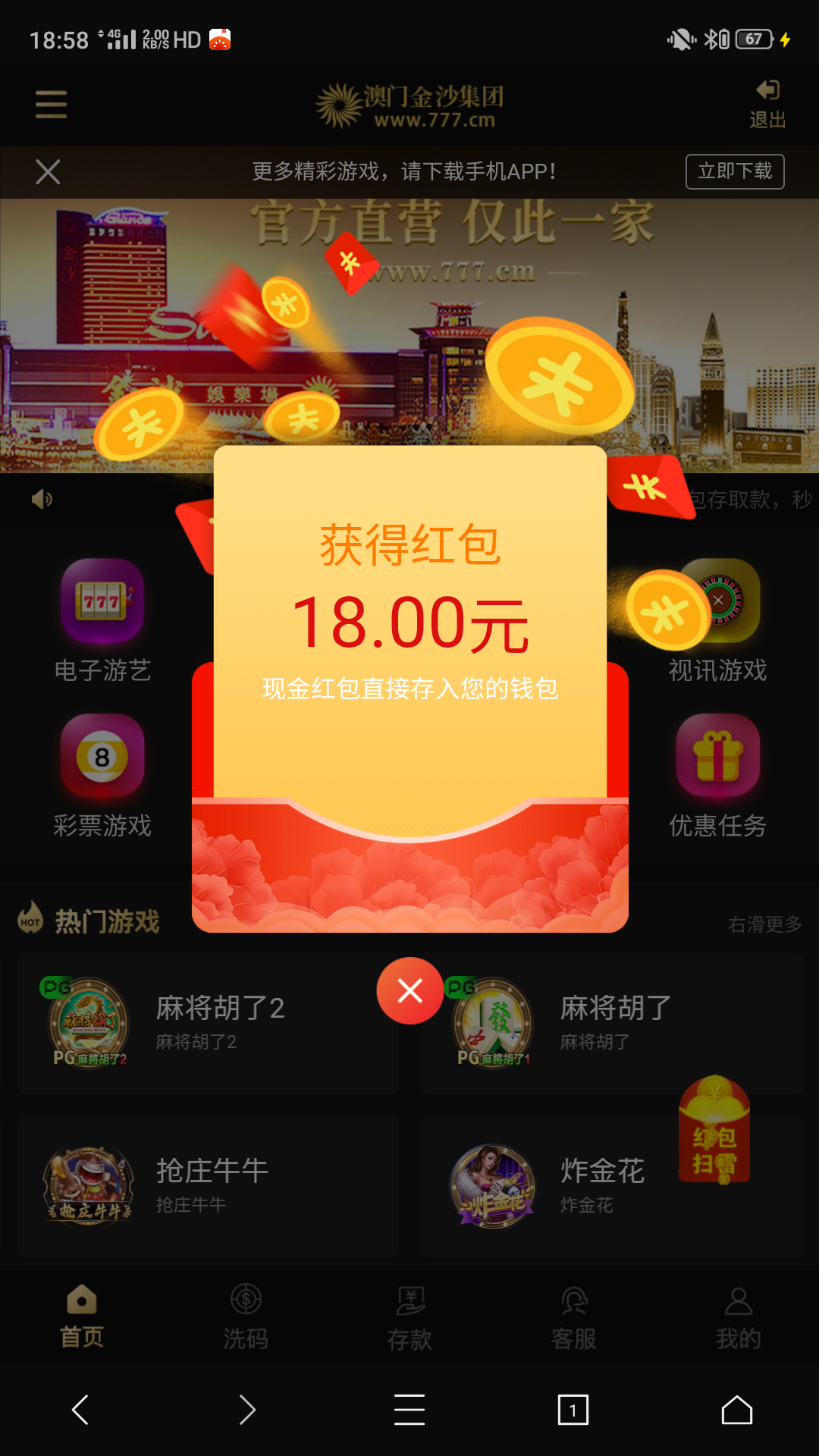 活动:新用户注册绑卡一小时之内自动派送18最低满100即可提现,不送的问问客服