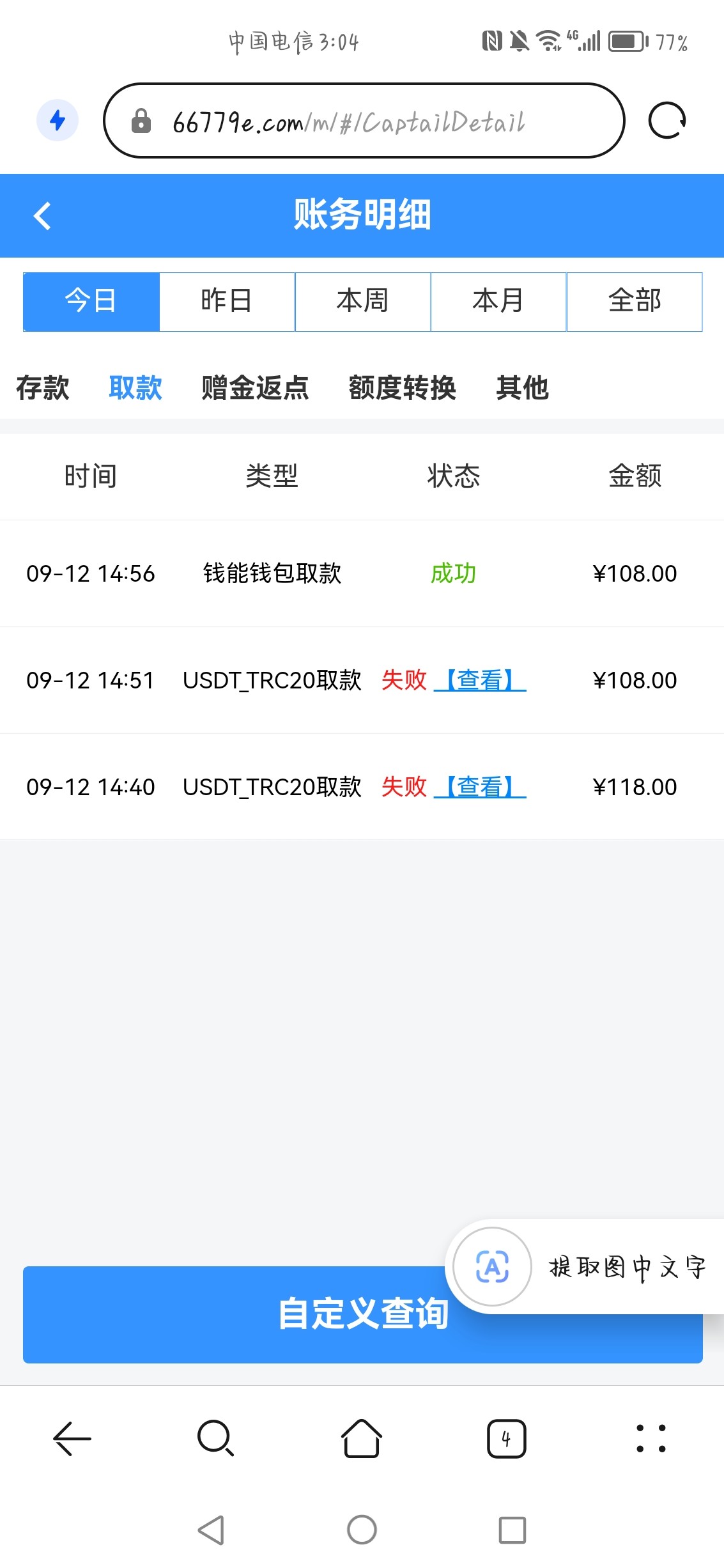 我运气好,提118退回来了扣了十块钱只能让我提108没有让我充值