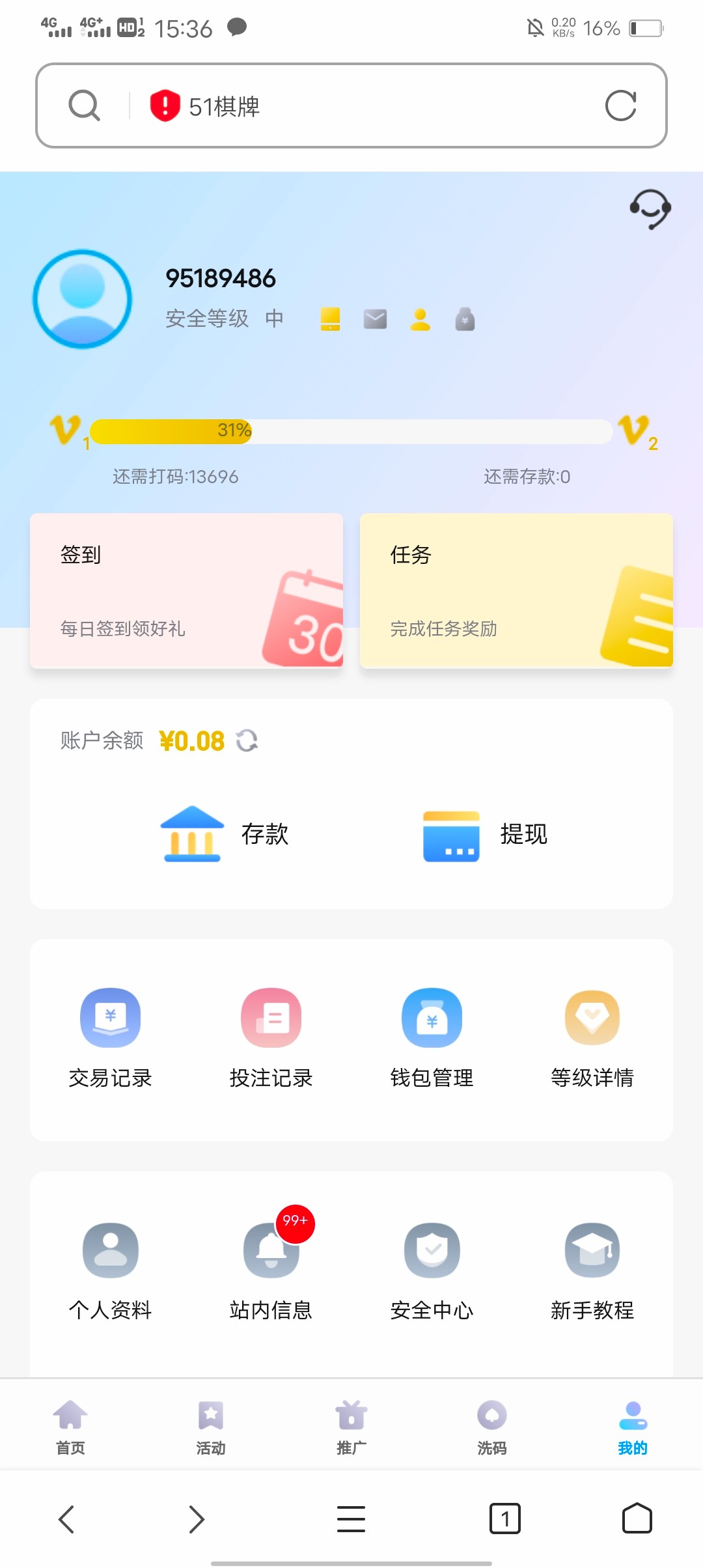 然后打几块钱流水恢复等级 去活动领中秋回馈 V1有58 高等级的高点