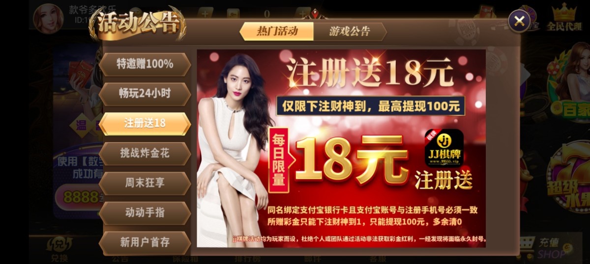 【JJ棋牌】—— (送18)