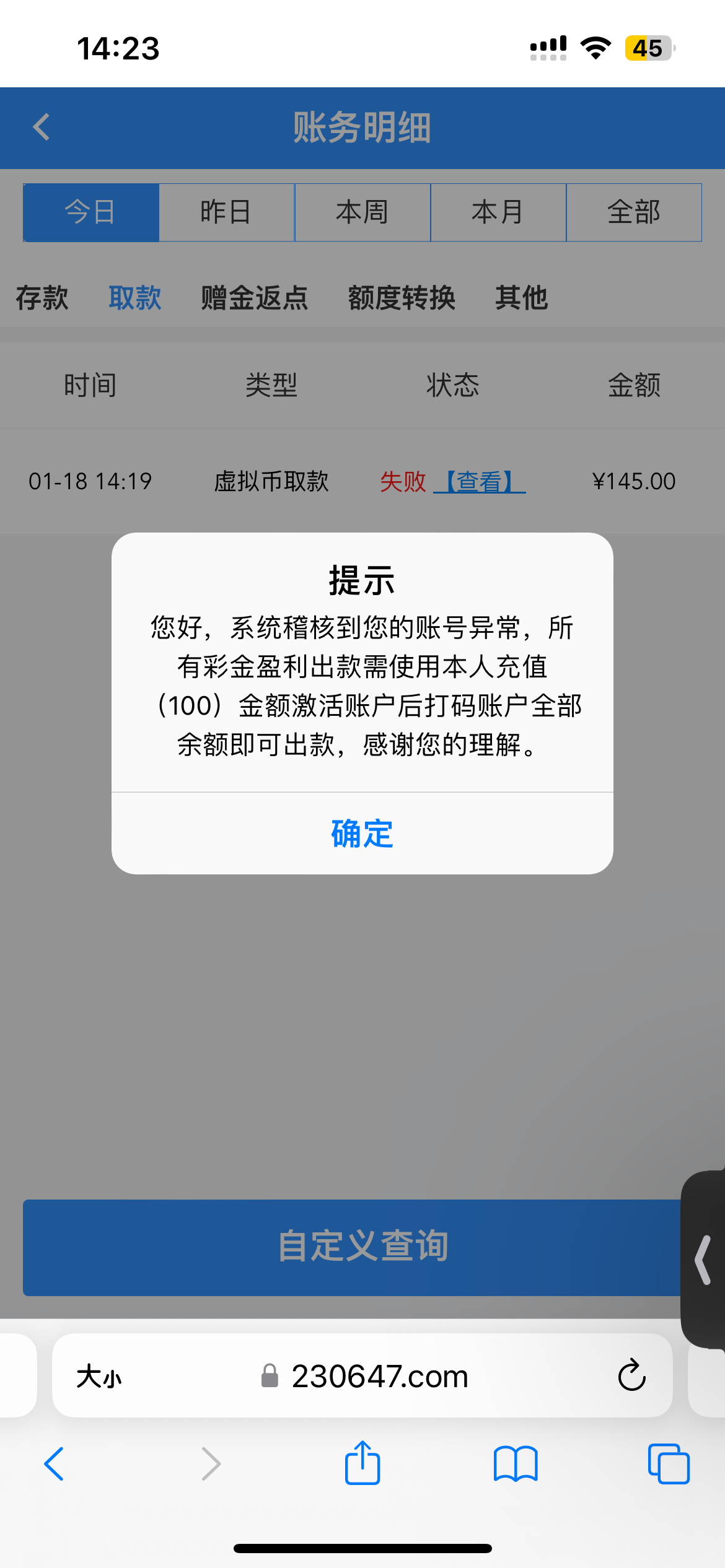 充值100提出来了