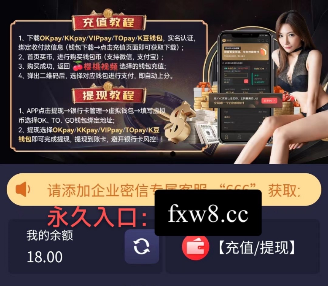手机号注册樱桃视频,再各大应用商店搜索企业密信添加客服自制短信发给他一般送18/100提现,这种一般都很好碰。