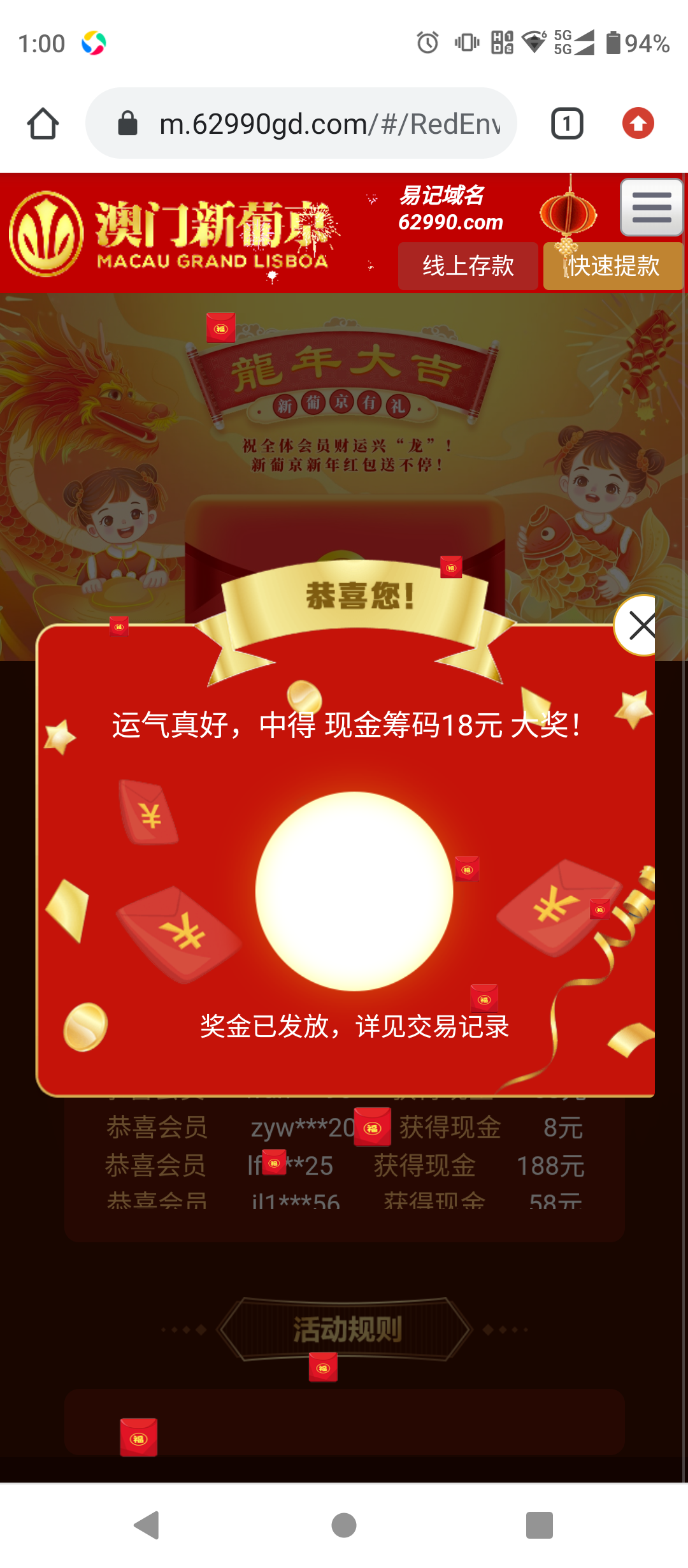 新葡京和银河这两个台子最近一年有充值记录的可以去抽奖了,基本都走18块以上,记住有充值记录的去,没有的别喷