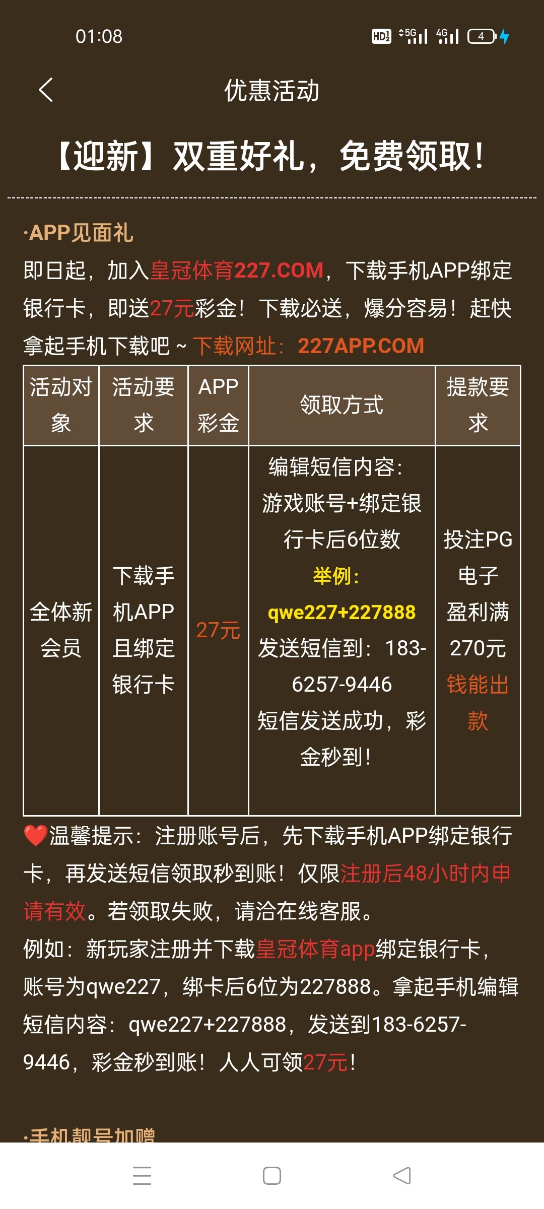 皇冠重置特邀彩金37,发短信27,64元