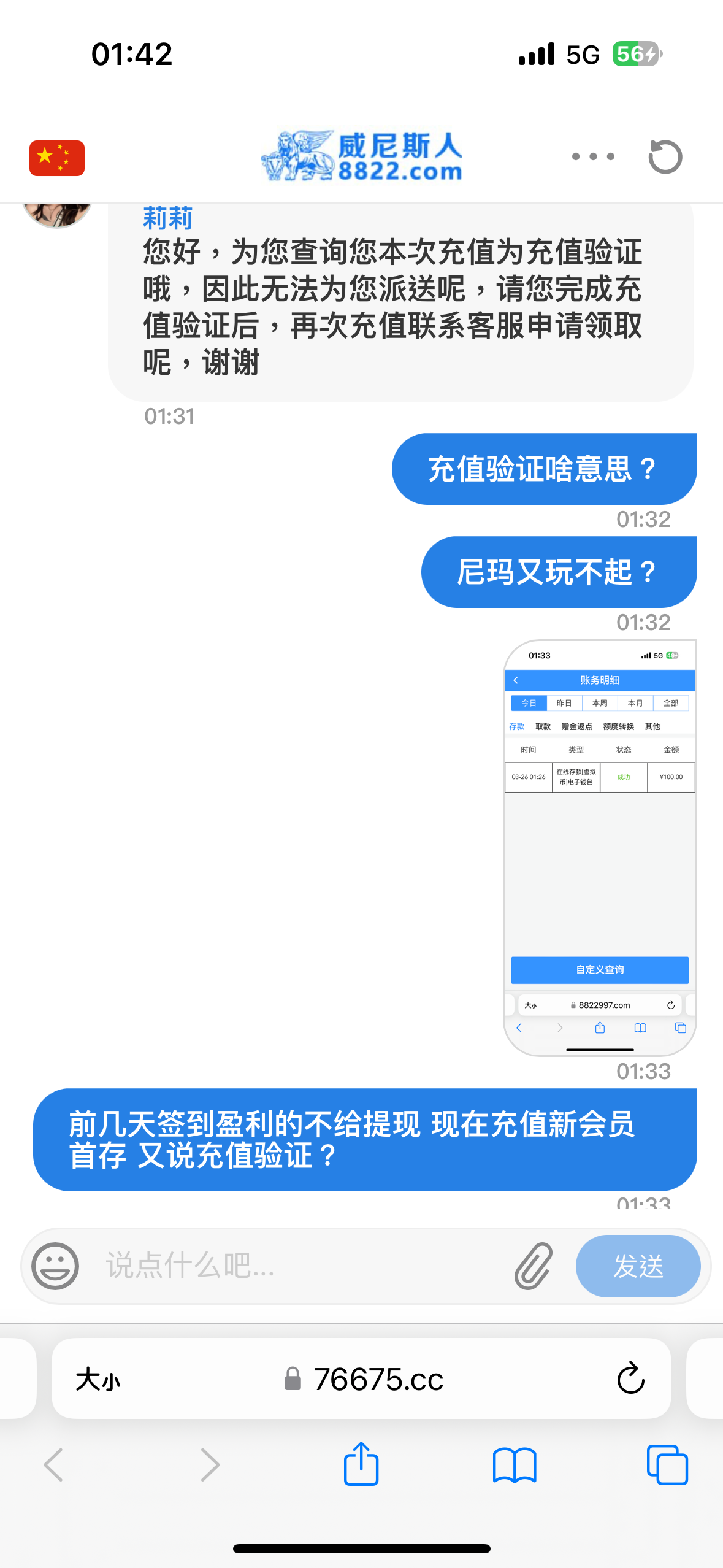提现失败,说ip区域存在套利,让充值100打余额3杯流水
