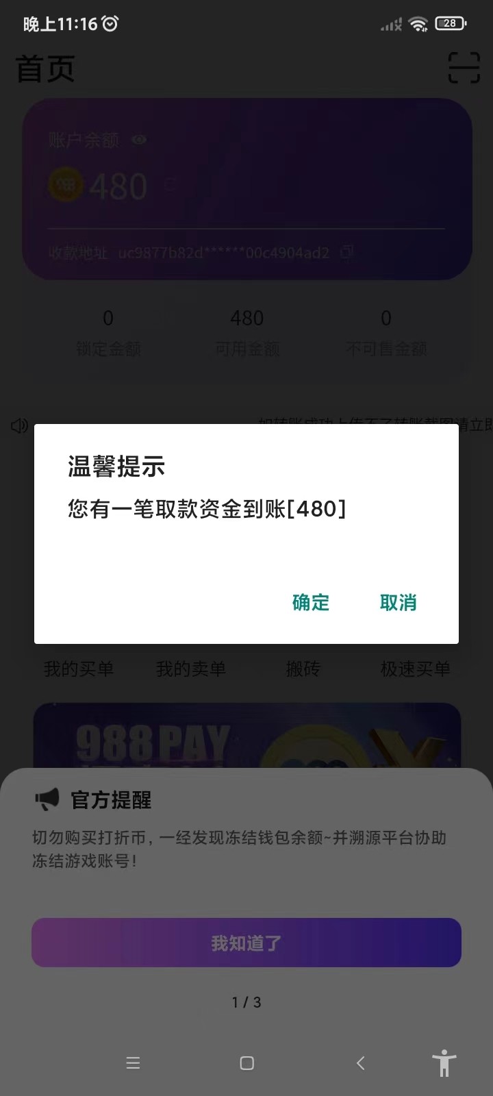 小姐姐小 昨晚提现的现在到了