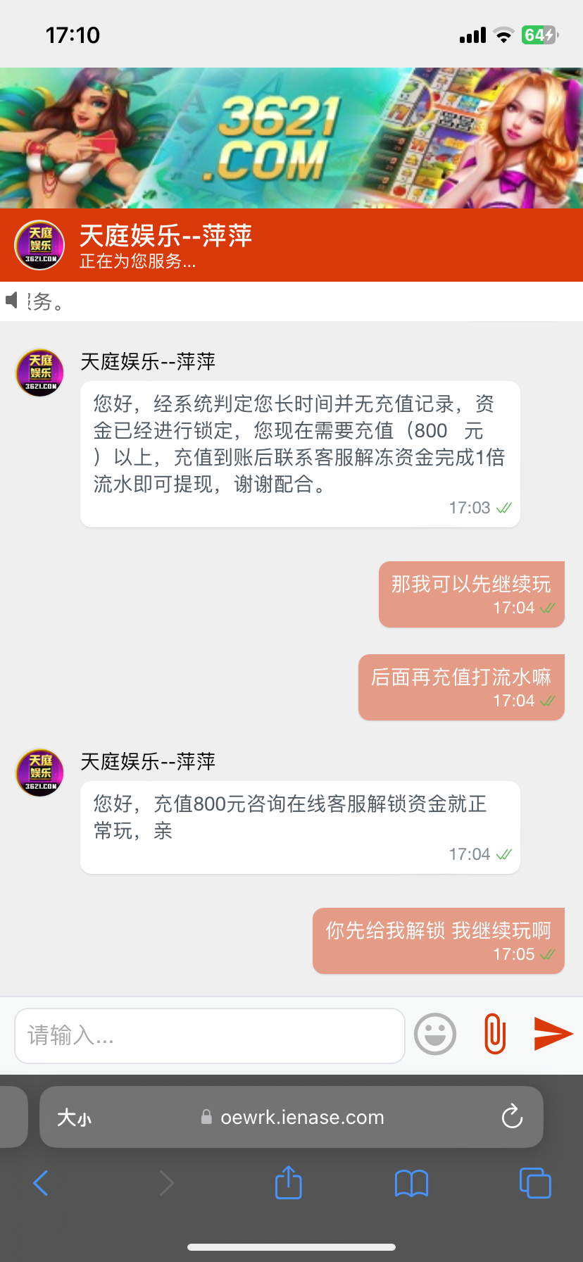 天庭我之前太久没充值提三千让我充等额,后面充了提了8700没有黑