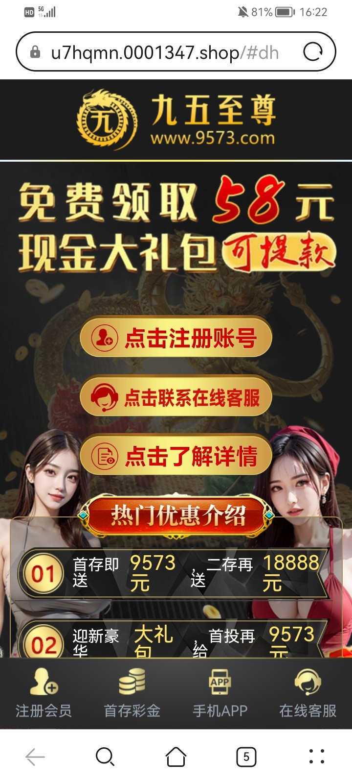 九五至尊特邀送58。有这个短信就冲!