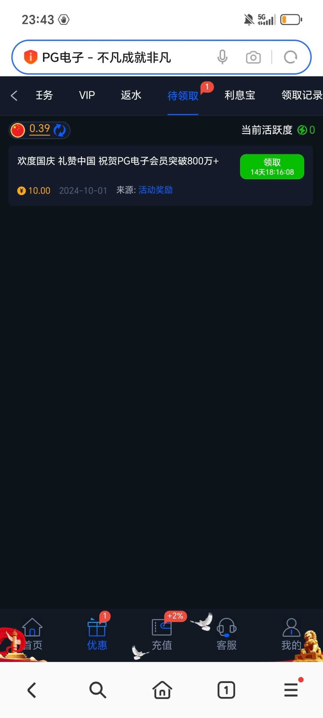 PG旗舰国庆回馈10