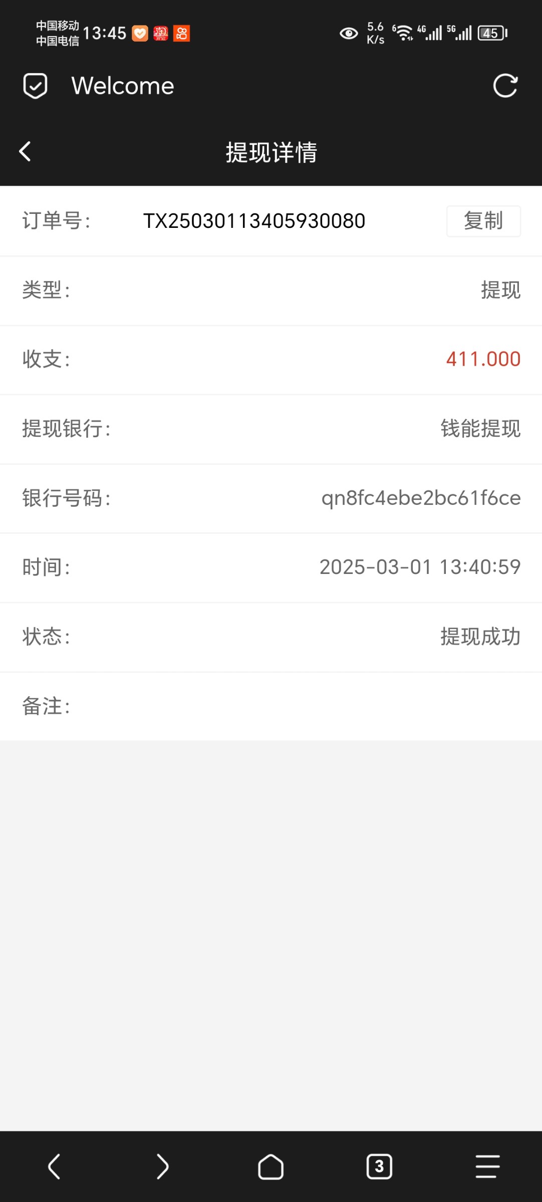 我2手机号重新领取,一个梭哈第二关就死了,一个梭哈到411,竟然提现成功了,以前我记得用这2个号领取,也打出来一个但是提现给老子封号了。。咋回事啊