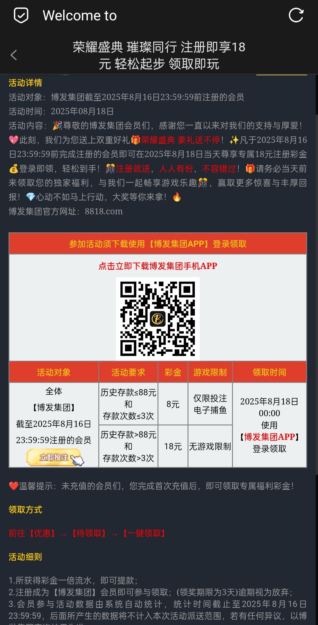 博发集团回馈18彩金