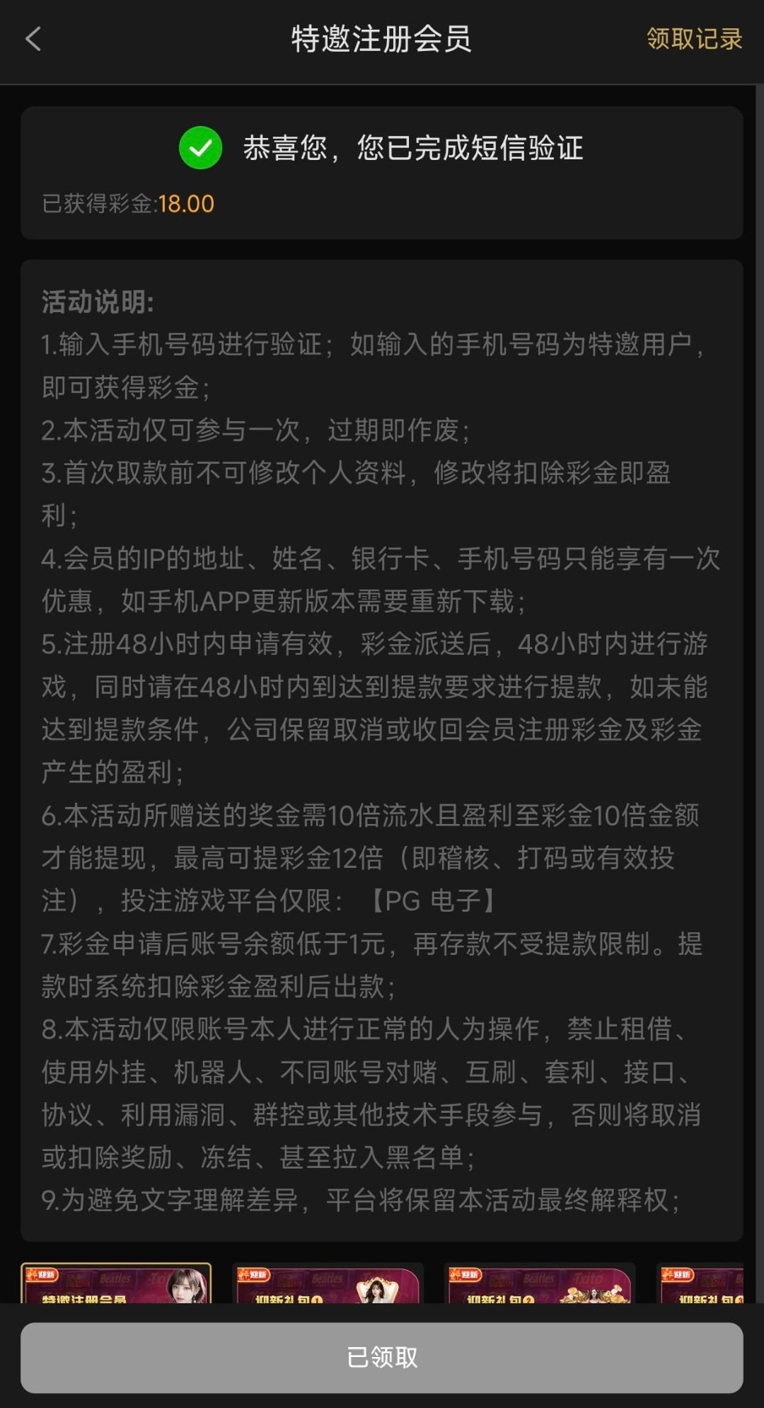 自助特邀彩金 没试过的试试