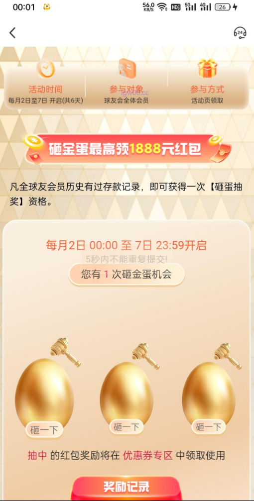 之前冲3次全挂,今天一块反水提100,不知道能不能到账