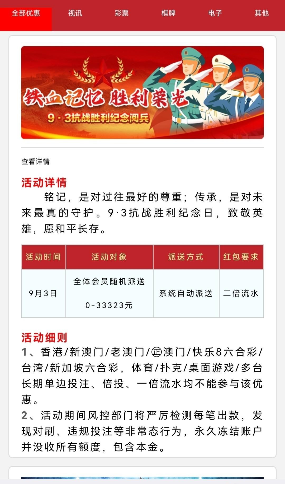 【银河33323】9.3大阅兵登录彩金