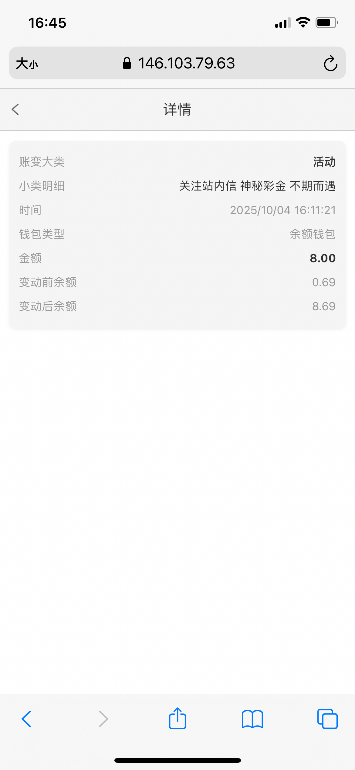 这个777444,前几天有一个回馈18块,我打到100。然后提现要充100。充了100提现了 现在每天都有三块站内信彩金 送了5天了,不知道能送多久。