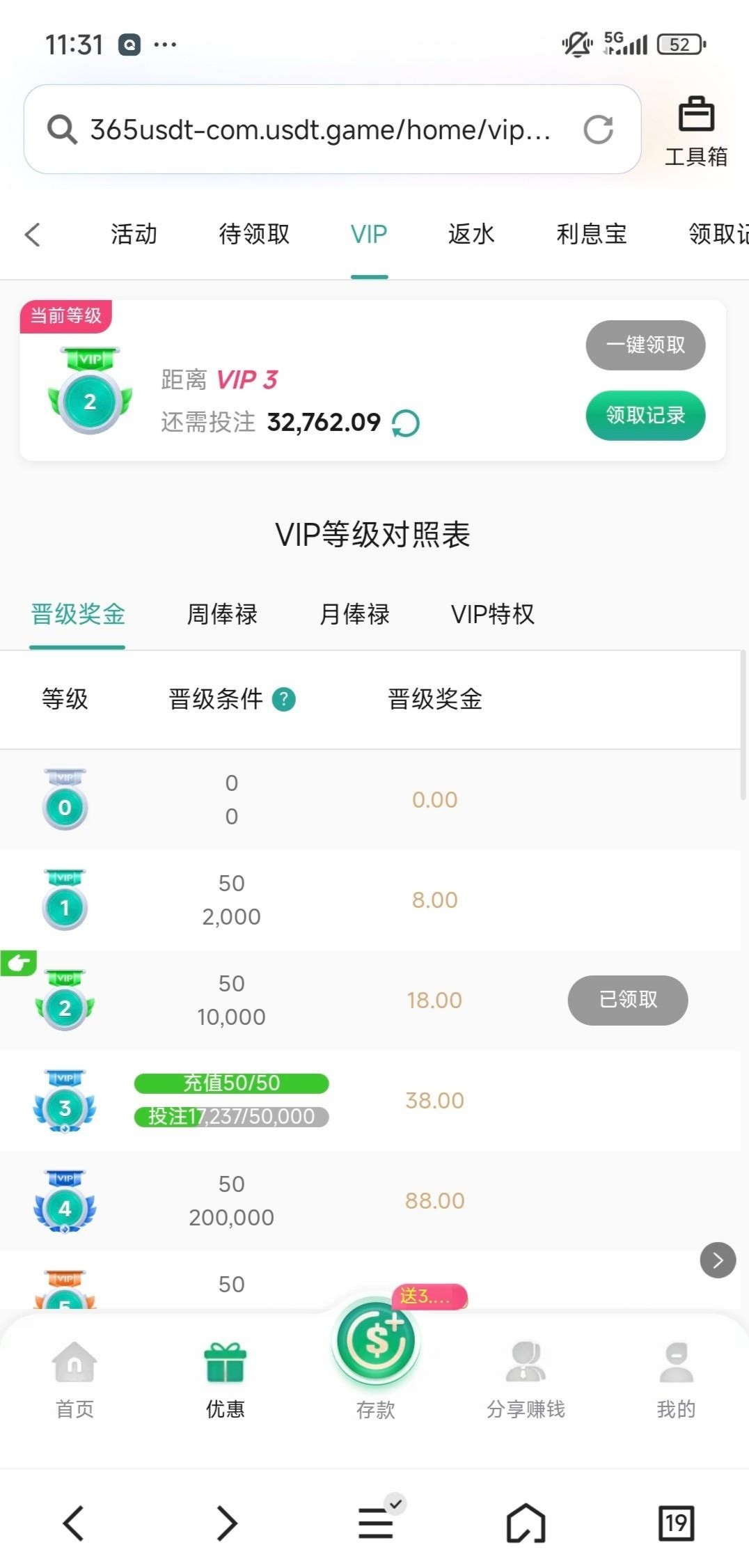10.21日APP版本更新完毕 VIP等级和周俸禄重置领取 没有玩过的老哥就不要喷我了 官网: usdt.game