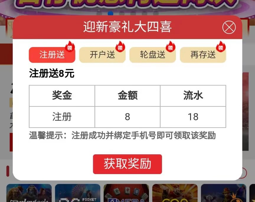 新用户注册绑定手机号首页右上角即可申请8彩金秒到 可选电子 捕鱼