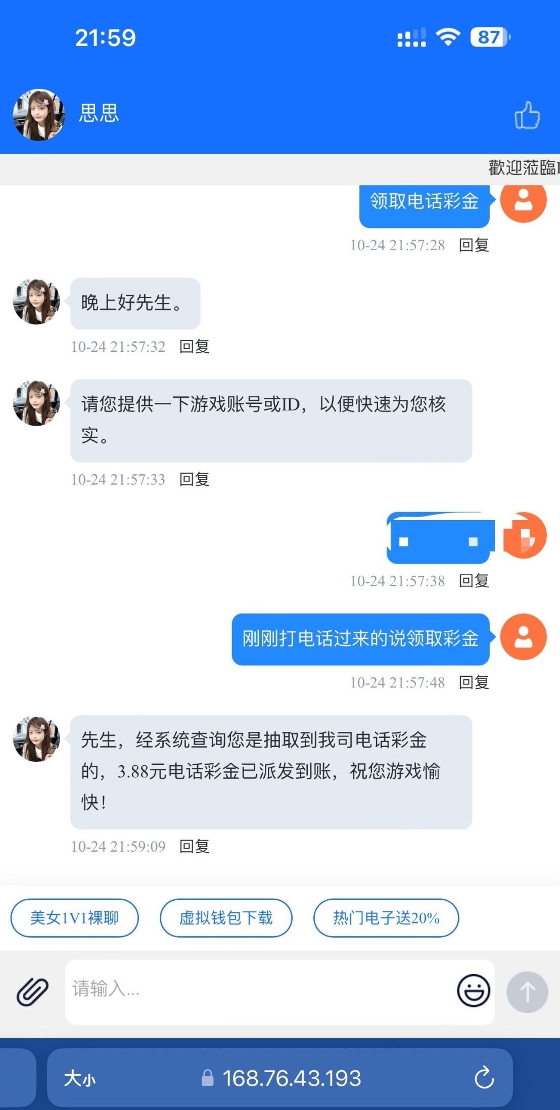 刚接到电话找客服领取 有号的老哥可以碰辞一下