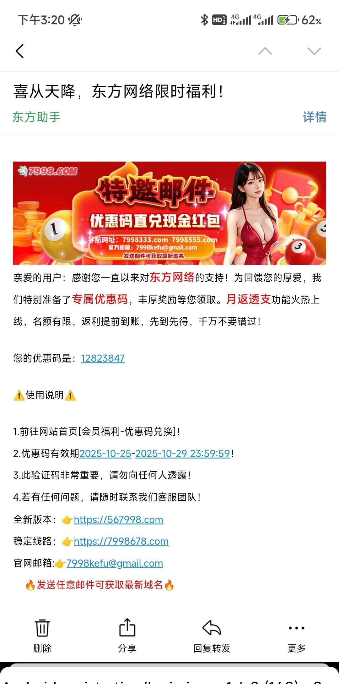 链接7998.com 邮箱里看看 可能屏蔽垃圾箱里也看看