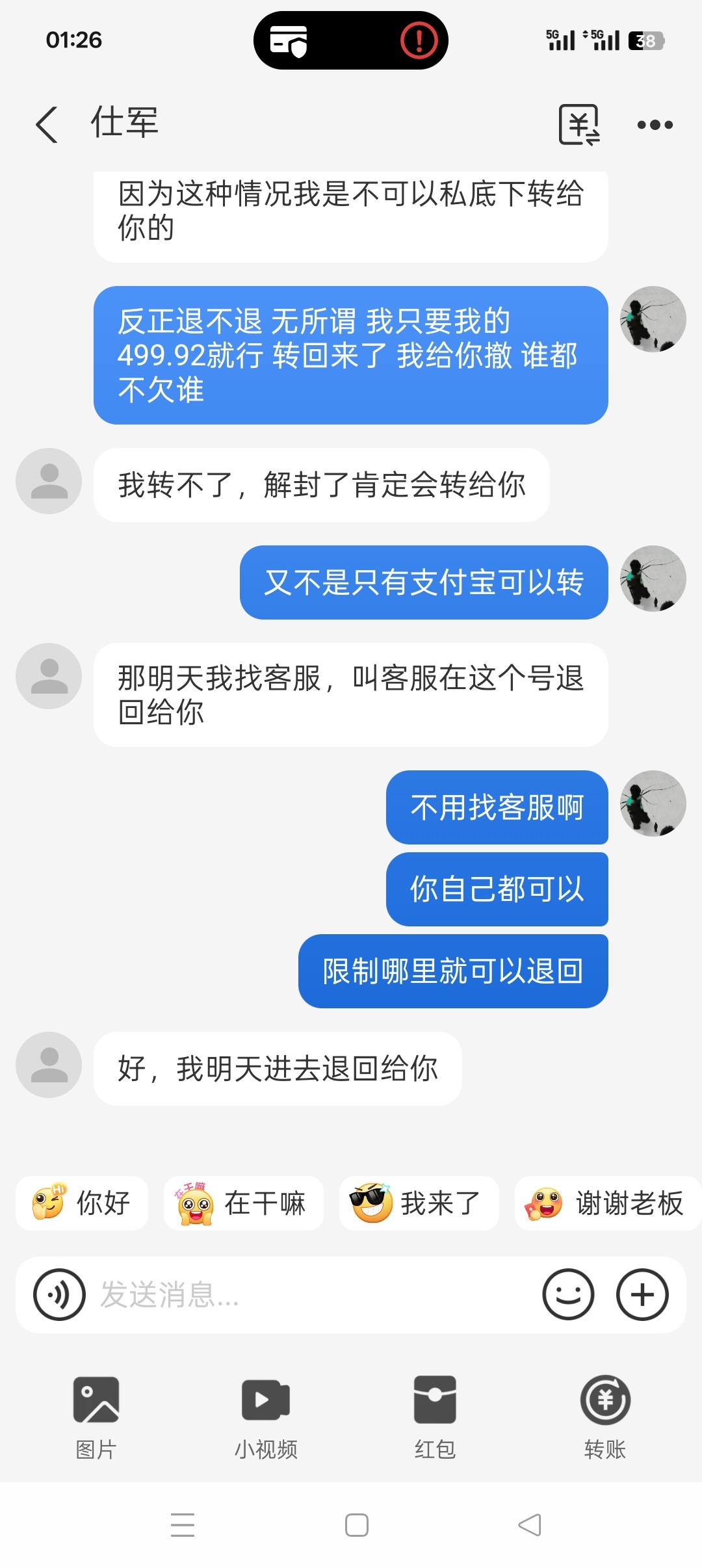 他举报对方支付宝,对方被限制了, ,想解除,就要退款给他