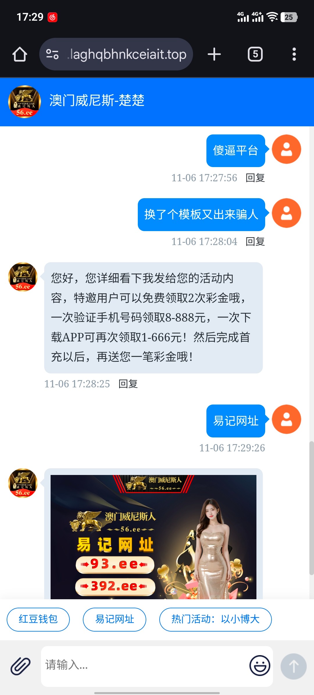 凡是后面带ee的都是黑台 隔壁都已经曝光很多了 我之前03.ee被黑300 领取了彩金需要充值才能娱乐 打出来了 被各种理由扣完 不要因小失大