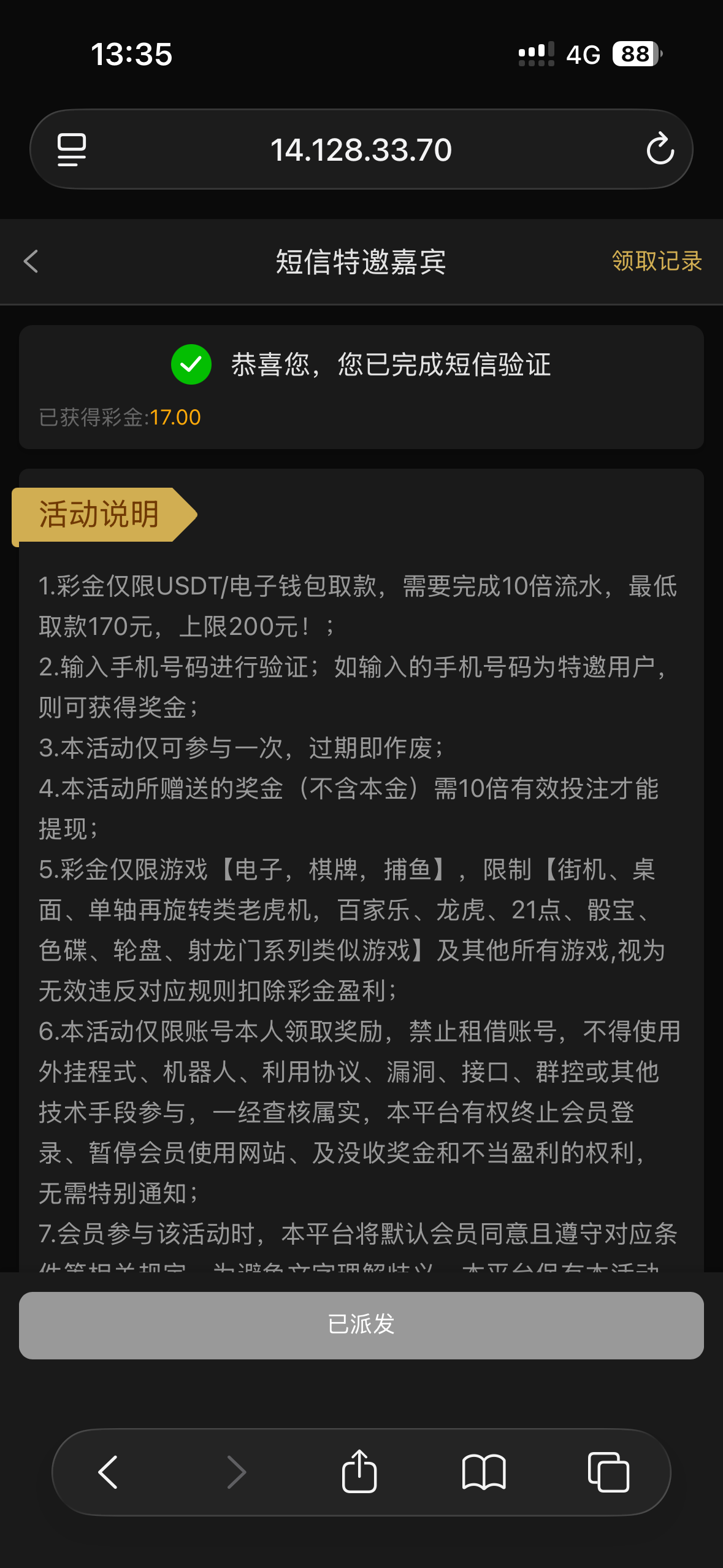 刚才给我发短信,特邀验证送17