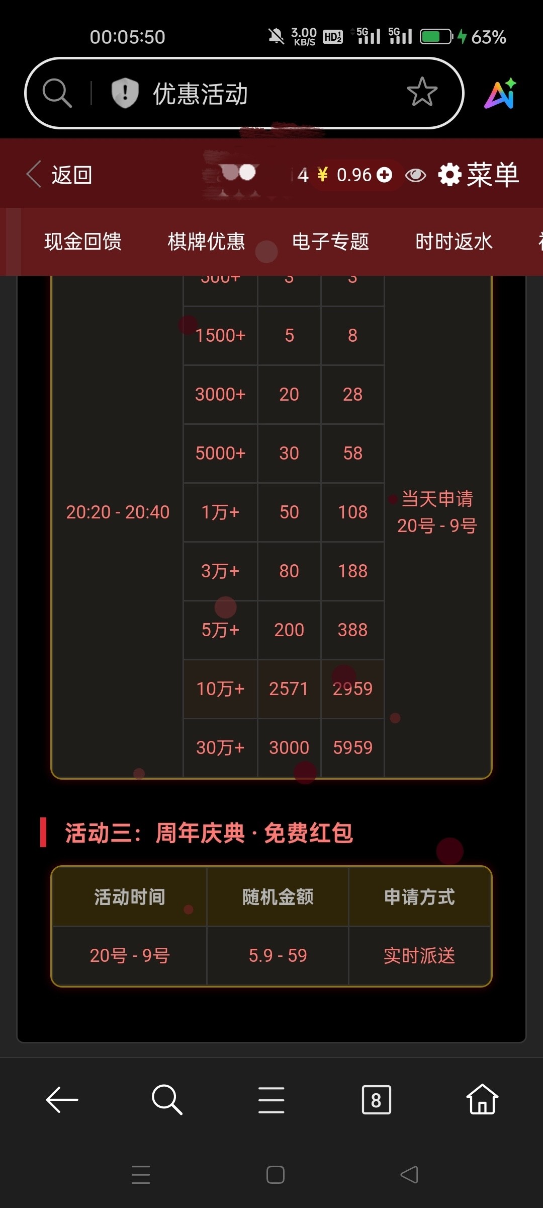 周年庆活动每天领红包5.9-59,最低5.9老哥们可以去看看 不确定不充值的能不能领 网址:5959.com