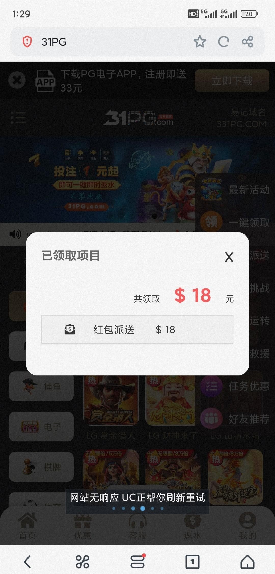 31pg.com 电话回访彩金登录领取,漏接电话的老哥们看看