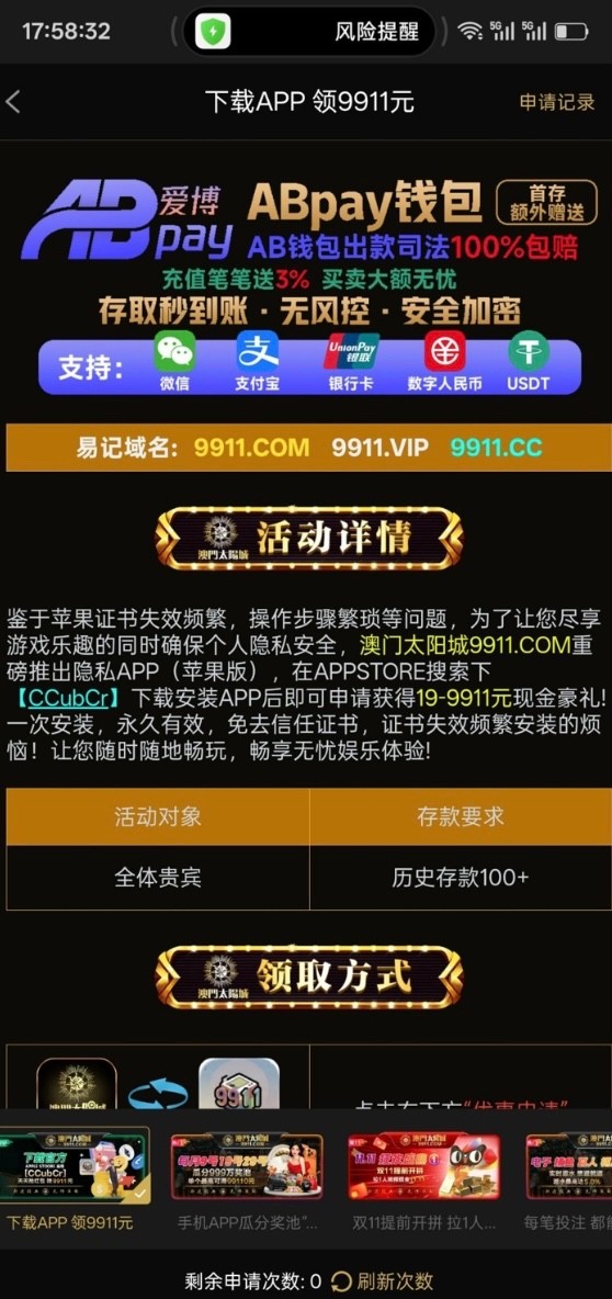 历史充值过100的去申请,没充值的,不用去了,地址9911.com打不开图上有别的链接
