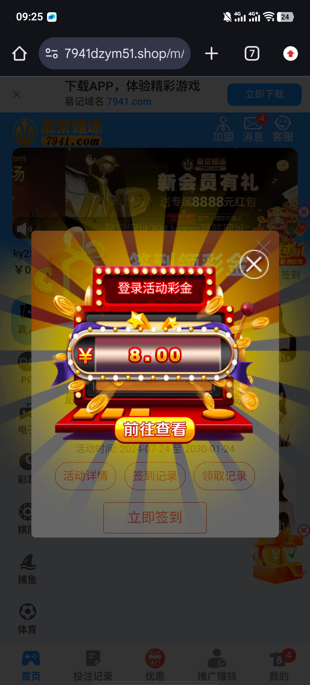 我随便登录上去看看就给我送了 老号上去看看有没有