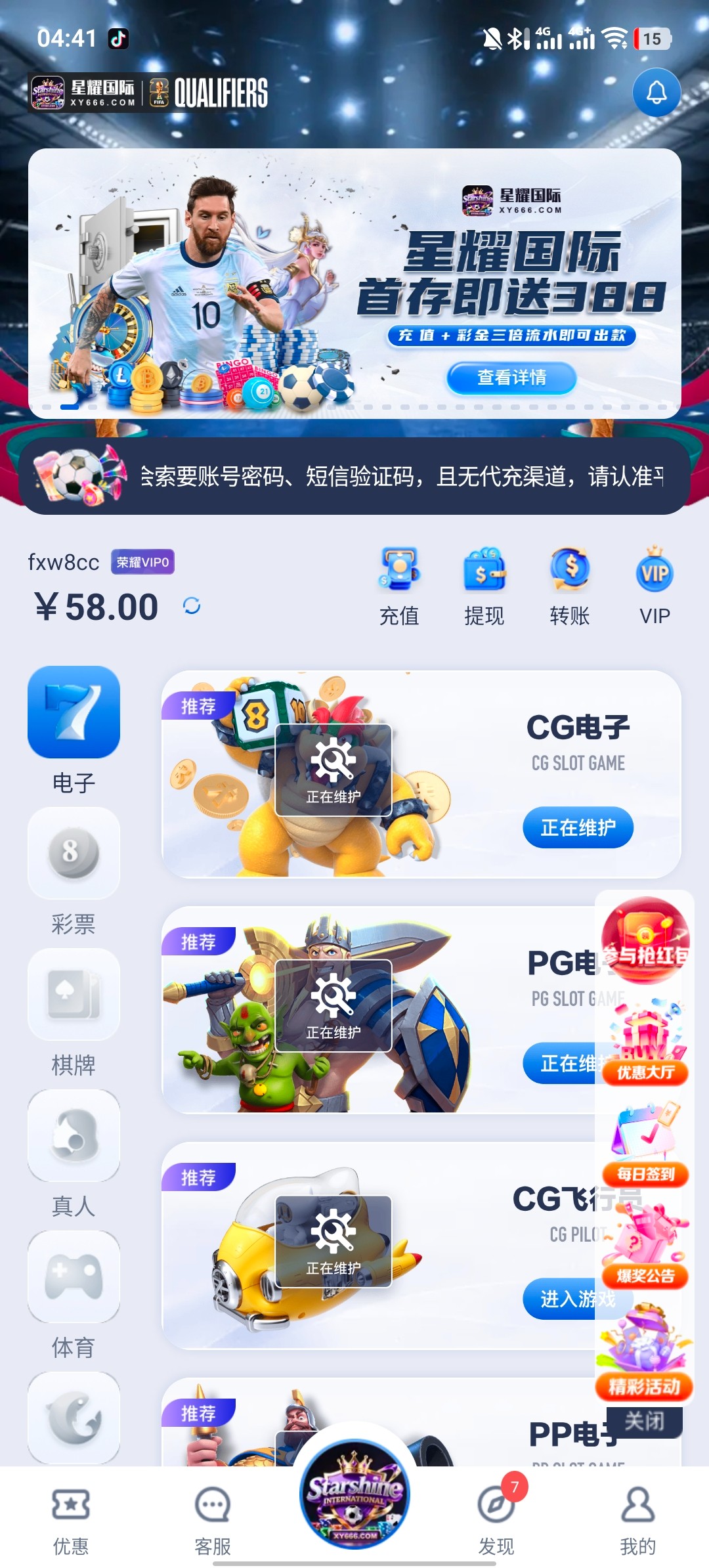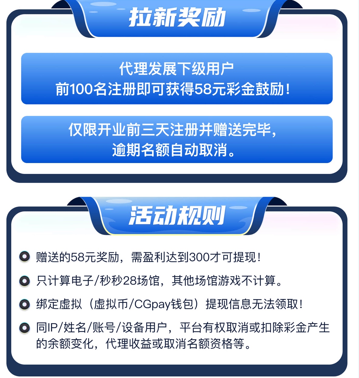 前100个注册的用户自动有58彩金好像领到的反馈下,没领到的也没关系,5号开放注册,先注册绑定好信息,8号才正式营业的,开业会发三天红包,论坛也会发福利的,到时不是分享网的下级参加不了