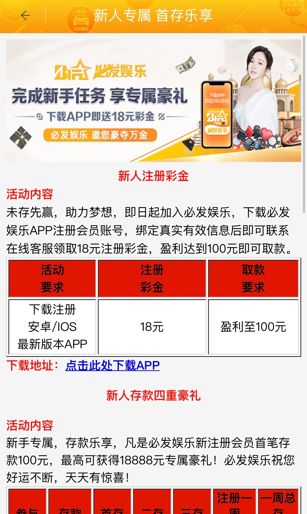 新用户下载平台APP注册完善个人信息绑定银行卡信息即可申请18平台彩金 无游戏限制 IP较严建议全程流量