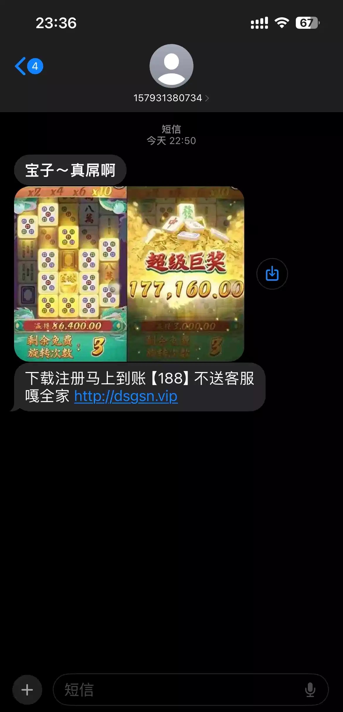 收到短信,下载注册自动有18万金币,打到145万,