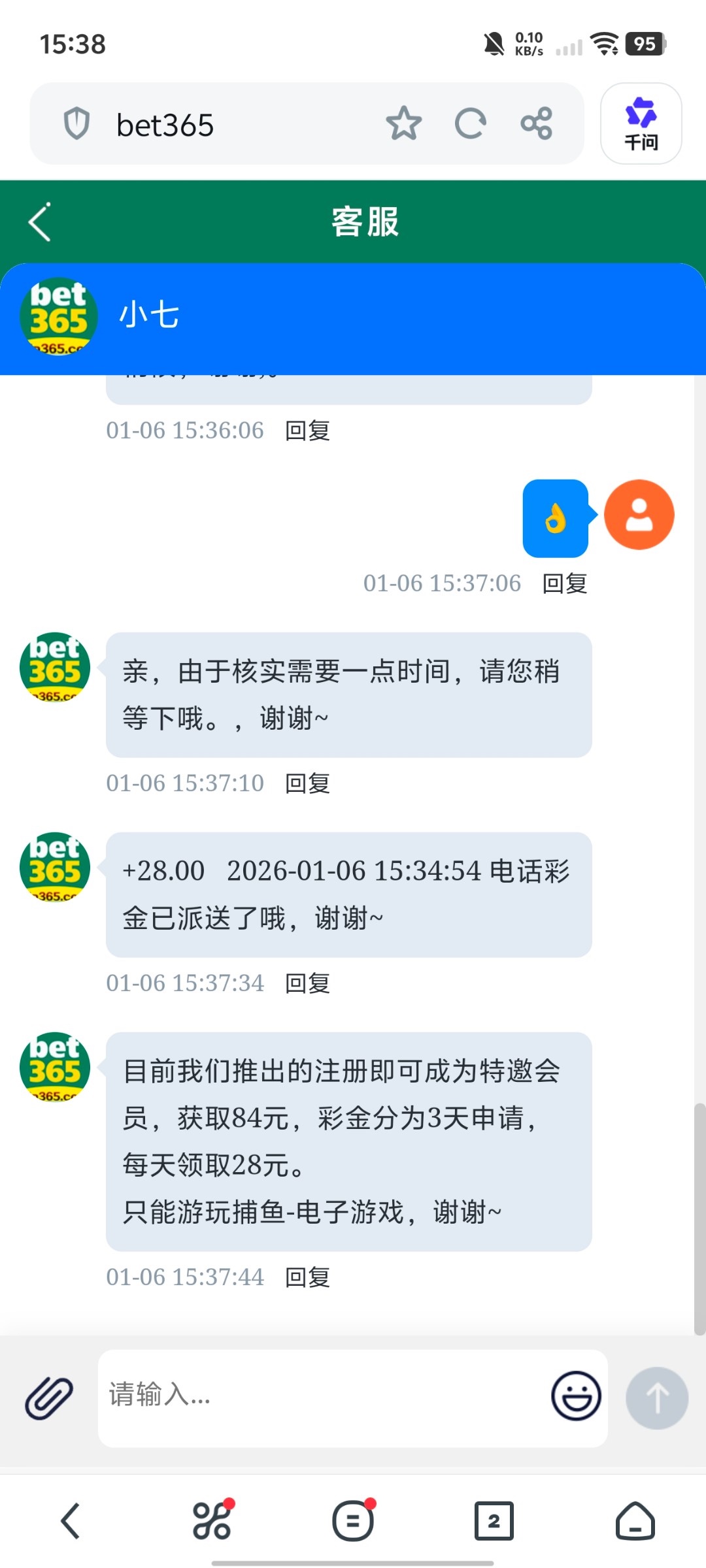 刚刚接到电话说登录注册送彩金84找在线客服申请,一天28,分3天送,你们去碰瓷看看在不在名单里