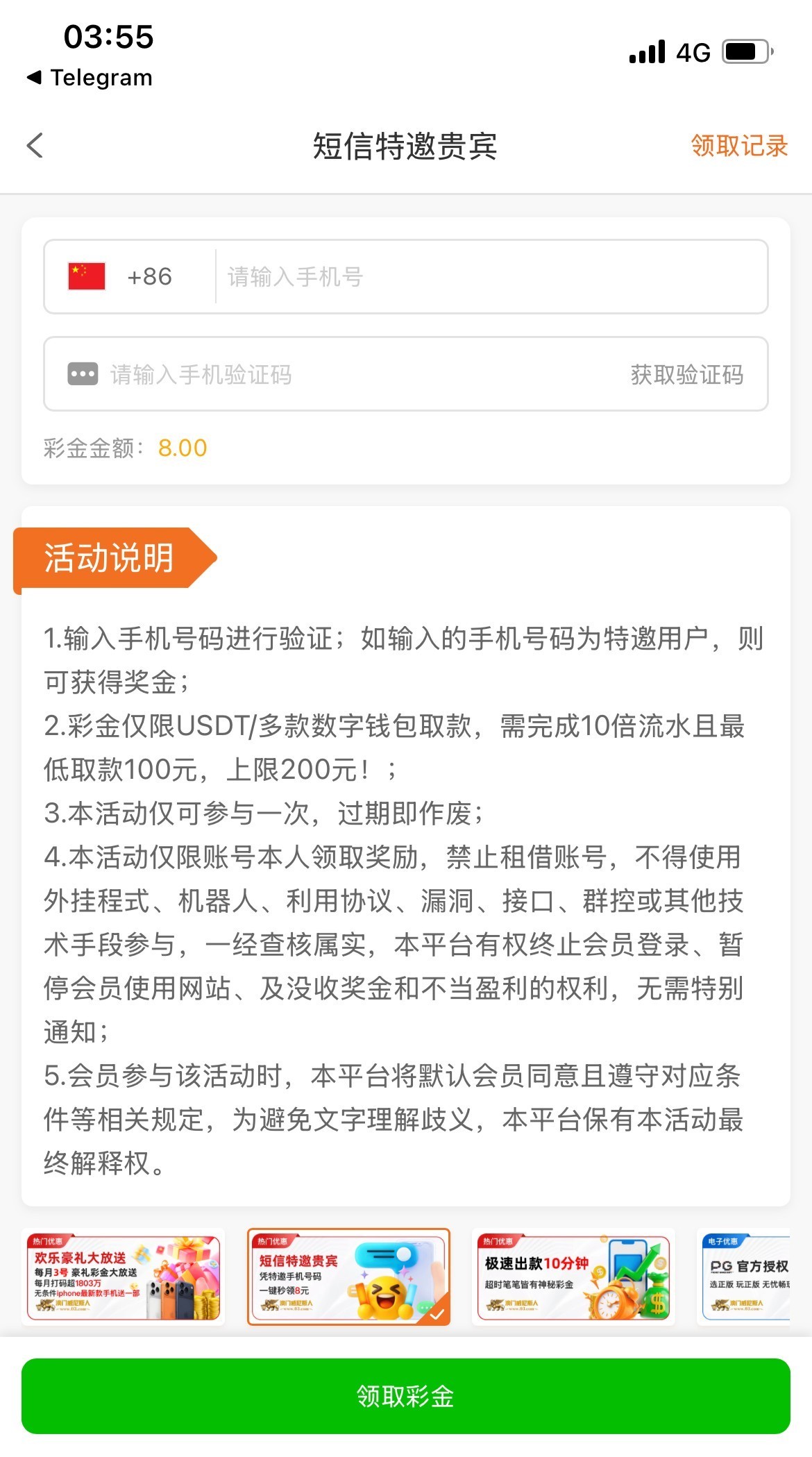 短信特邀领取的