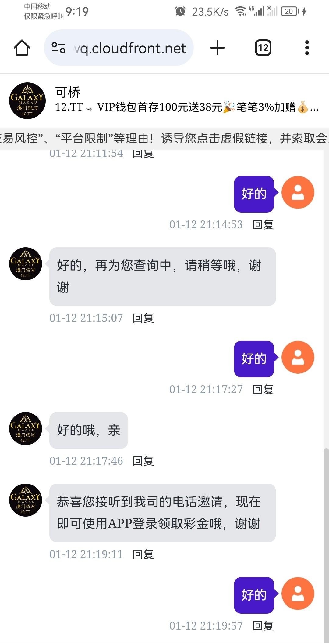 【银河12】碰瓷彩金