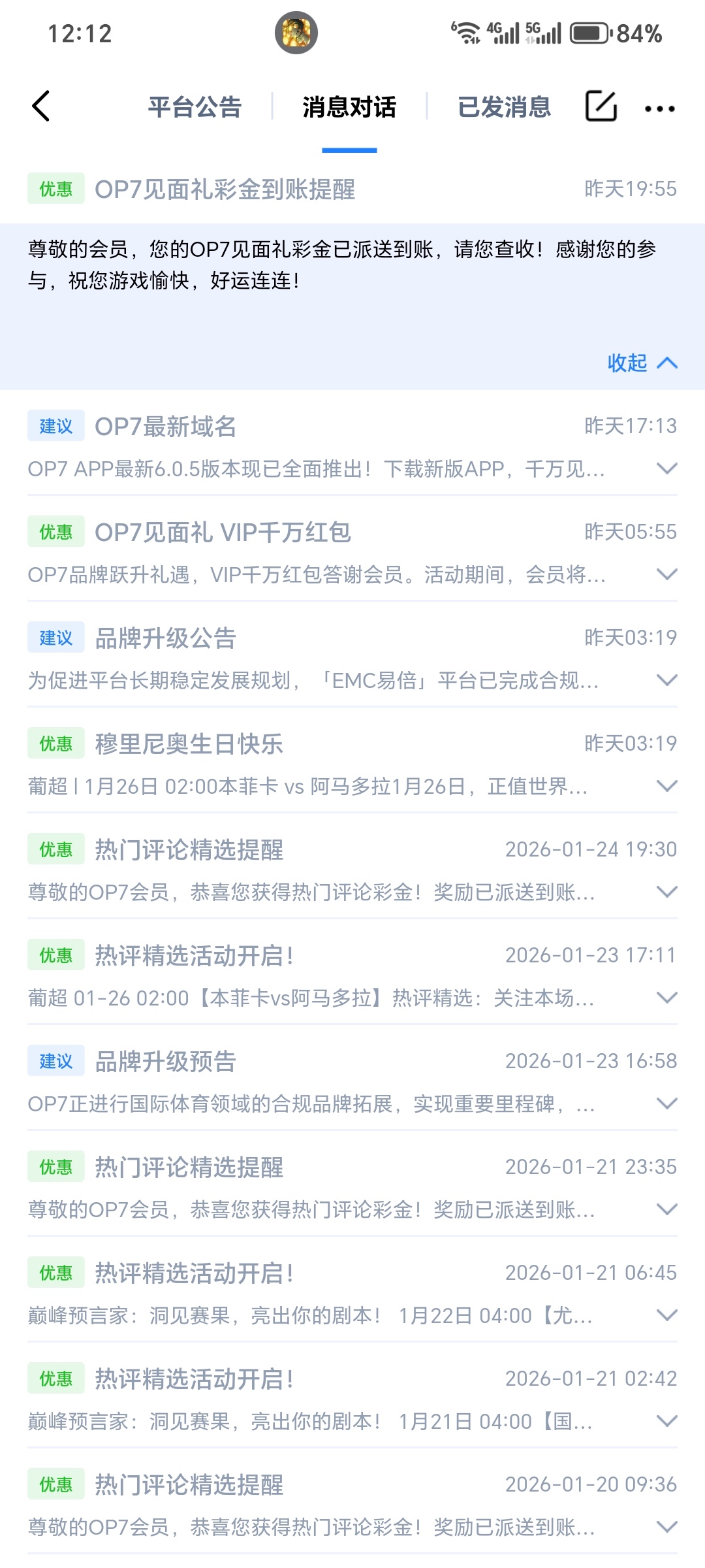 玩过的直接下载注册uc,找客服截图账号领取,客服回的慢,发了东西等着登记了再福利中心领,根据vip等级送的彩金,网址:op7.io