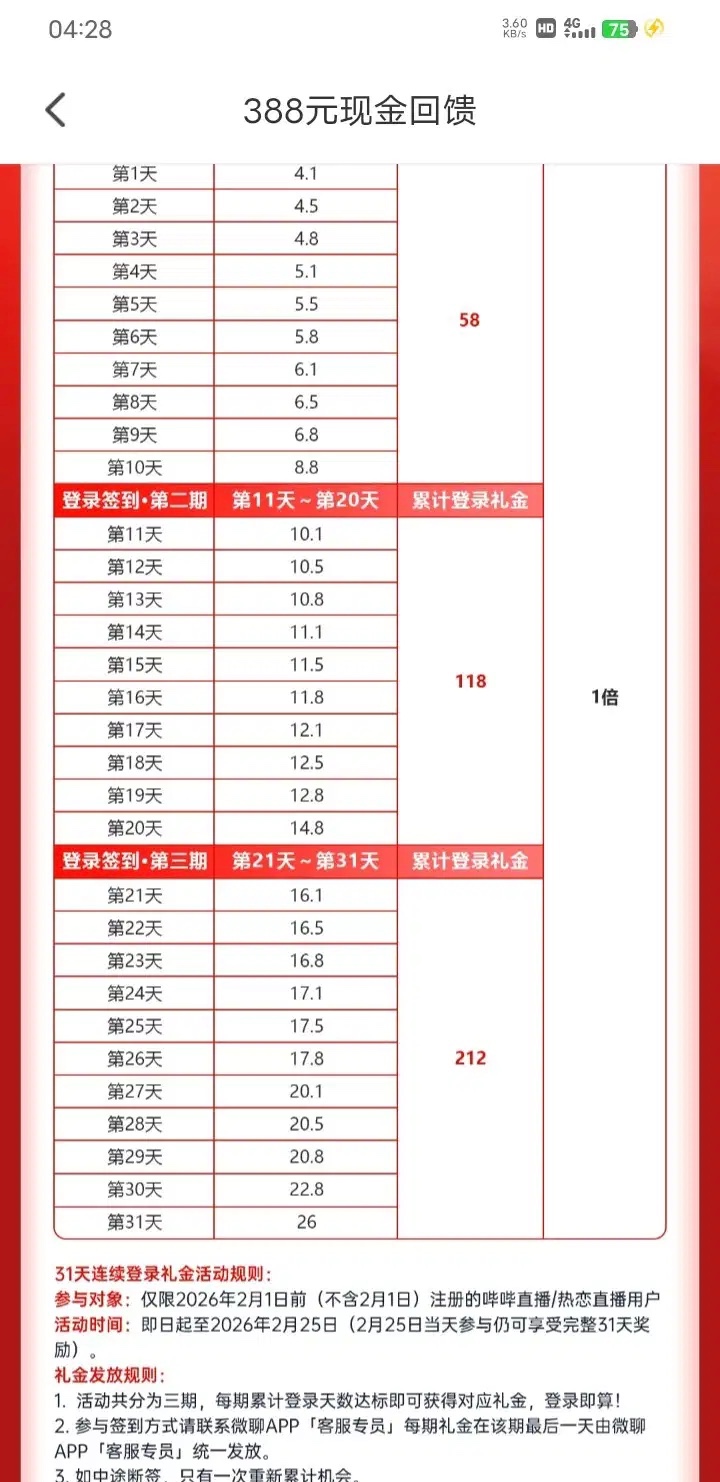 参加过哔哔收购热恋的去签到领388现在去还能参加签到但是25号之后在去就参加不了了只要你不断签就能一直签到,今天最后一天了赶紧去我合并之后没有充值还是给我送了白嫖1k多,签到每10天送一次链接2B.TV