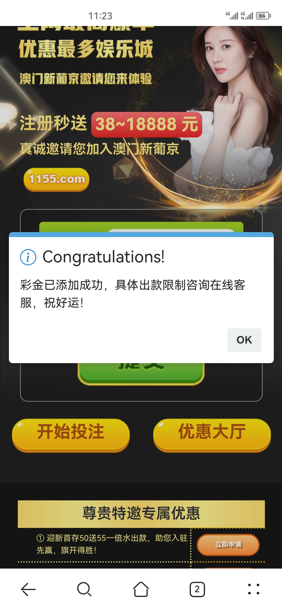 最低赠送38,我是送了58