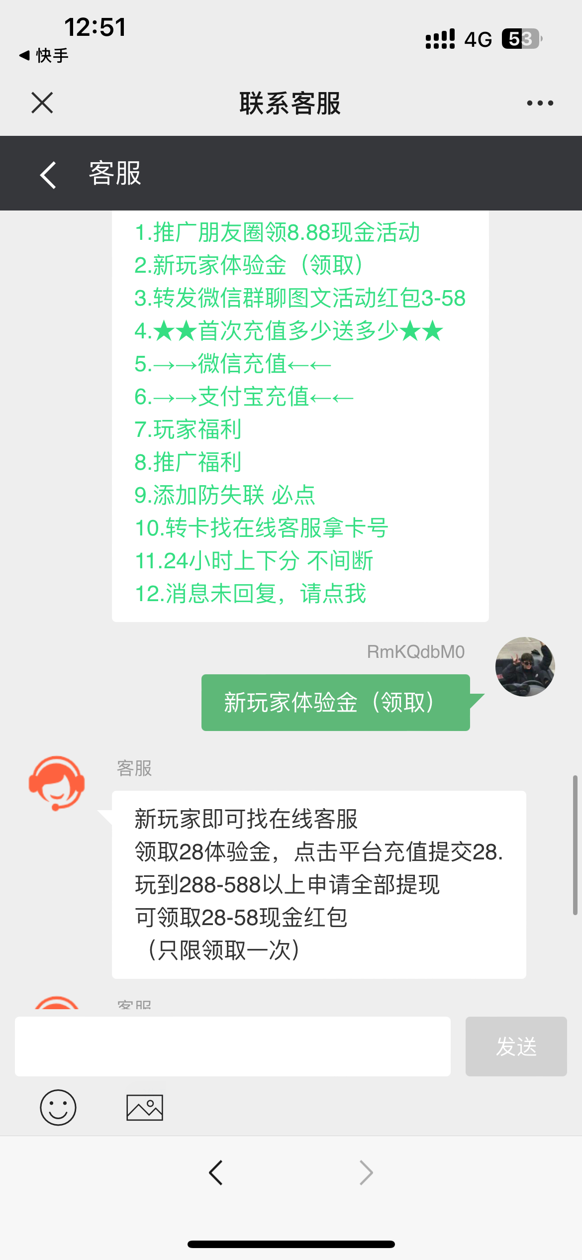 送28打到288-588下分10%现金