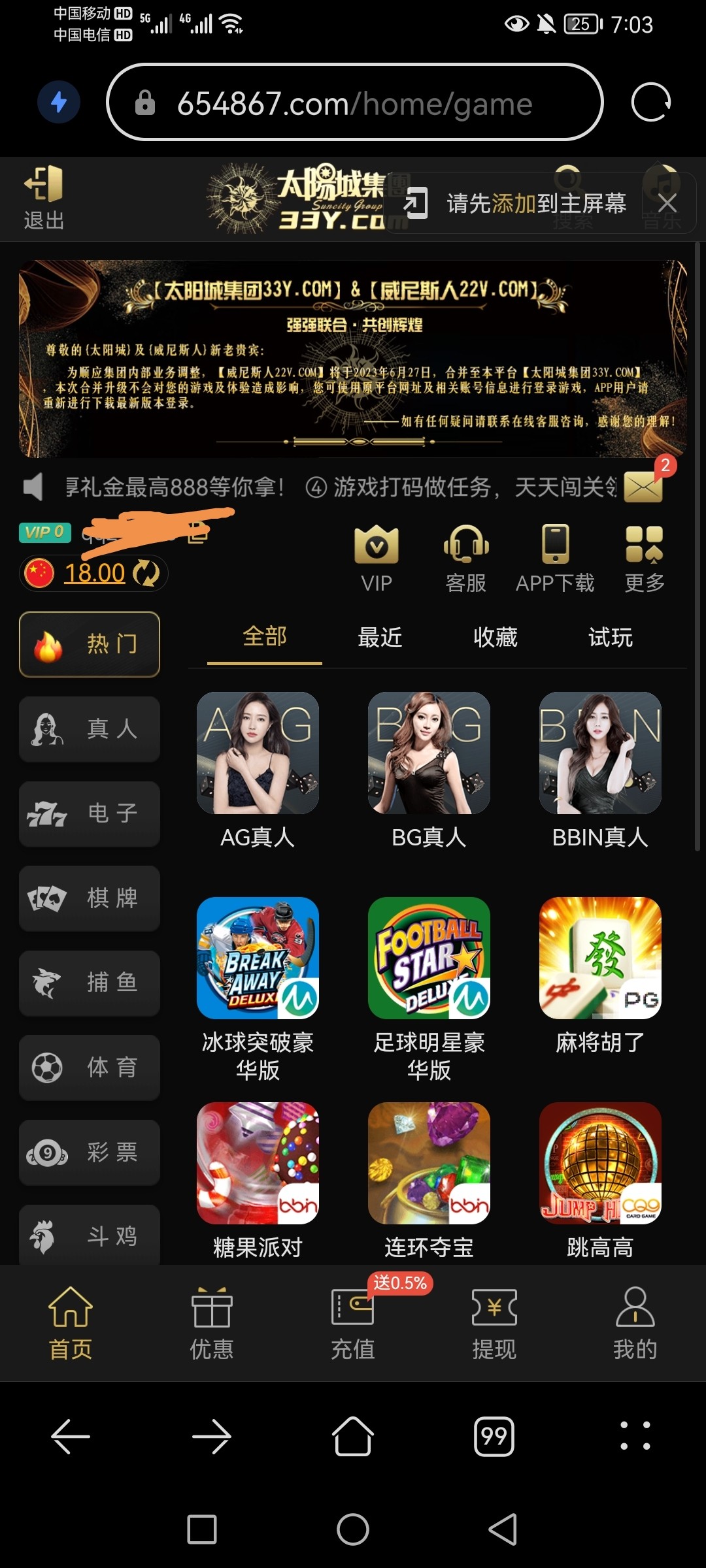 太阳城送18