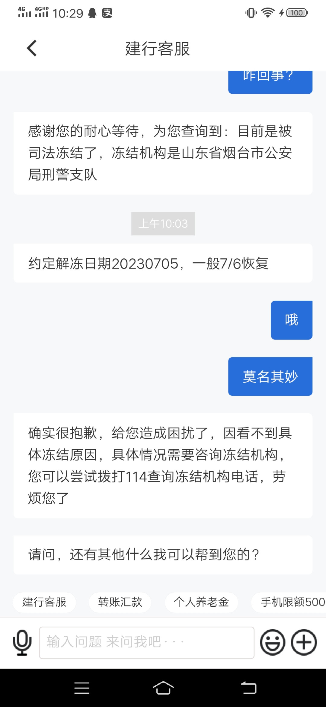 中行也是刑警冻结,银行客服查了,说应该是转账对象有问题大数据给反诈,然后就冻了,过几天自动解。